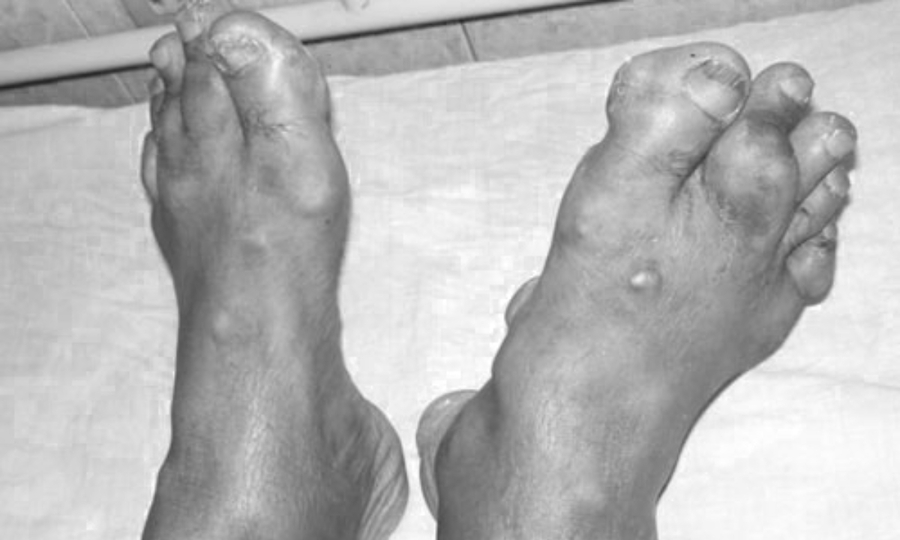 Gần đây, anh bị tái phát, thường xuyên cảm thấy đau nhức và tình trạng bệnh nặng thêm, anh mới đến bệnh viện Đại học Y dược Hồ Chí Minh để khám. Các bác sĩ chẩn đoán, bệnh gút đang ở giai đoạn nặng, nhiều khớp bị biến dạng do sử dụng quá nhiều thuốc có chứa corticoid khiến tay chân bị bầm tím, suy thận. Quá trình điều trị trở nên phức tạp và mất nhiều thời gian.