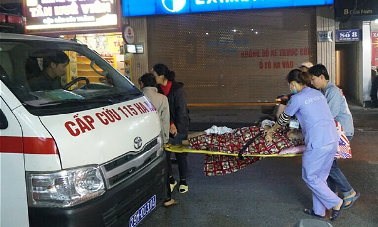 Một bệnh nhân nữ 65 tuổi ở Phúc Xá, quận Ba Đình đột ngột mệt, đau tức ngực và ngất xỉu, bất tỉnh vào sáng sớm. 6h10 phút sáng, chồng cô gọi xe cấp cứu. Các bác sĩ, điều dưỡng của Trung tâm Cấp cứu 115 Hà Nội đến trong 5 phút.