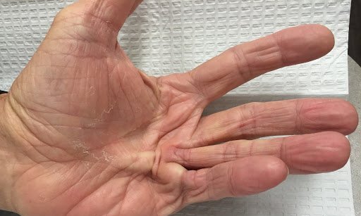 Tình trạng này kéo dài hơn một năm. Lúc đầu chỉ hơi đau ở gân, sau đó xuất hiện các vết chai khiến việc cầm nắm dị vật rất khó khăn. Vừa qua, anh đến Bệnh viện Việt Nam – Thụy Điển Uông Bí khám, bác sĩ chẩn đoán bệnh nhân bị co cứng gan bàn tay hoặc co cứng Dupuytren cần phẫu thuật. Gan giảm cân là bệnh lý thường gặp nhưng có thể không xác định được nguyên nhân do yếu tố di truyền. Căn bệnh này thường xảy ra ở nam giới trên 50 tuổi, khiến một hoặc nhiều ngón tay bị co cứng, quặp vào lòng bàn tay, lâu dần mất khả năng co duỗi các ngón tay.