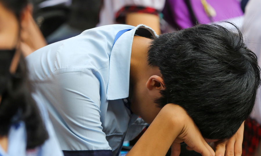 Áp lực thi cử khiến nhiều học sinh căng thẳng, chán nản và mất trí. Nhiếp ảnh: Quỳnh Trần .