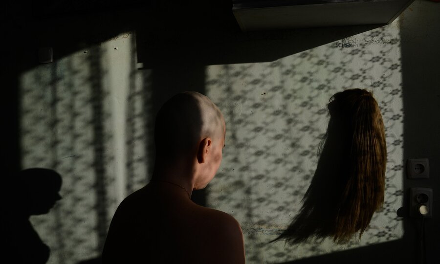 Từ nhỏ, tóc của Alyona đã rất dài, nhưng tóc bắt đầu rụng trong quá trình hóa trị. Mất mát không lớn, nhưng cô cảm thấy tiếc. Bức ảnh cô ghi lại đã trở thành bức ảnh đáng nhớ nhất, tượng trưng cho những thay đổi về thể chất và tinh thần mà cô phải thích nghi.
