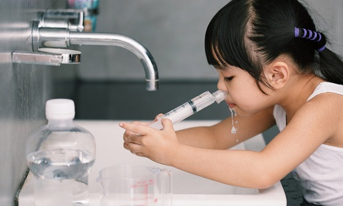 Không sử dụng ống tiêm hoặc mũi thông thường. Rửa mũi cho trẻ bằng máy giặt.