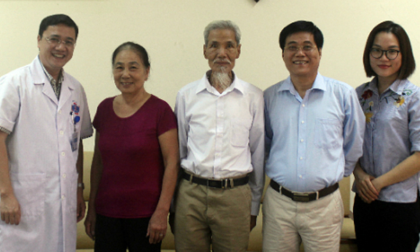 Ông Hiếu (giữa) khỏi bệnh ung thư vòm họng cách đây 48 năm. Ảnh: T.H