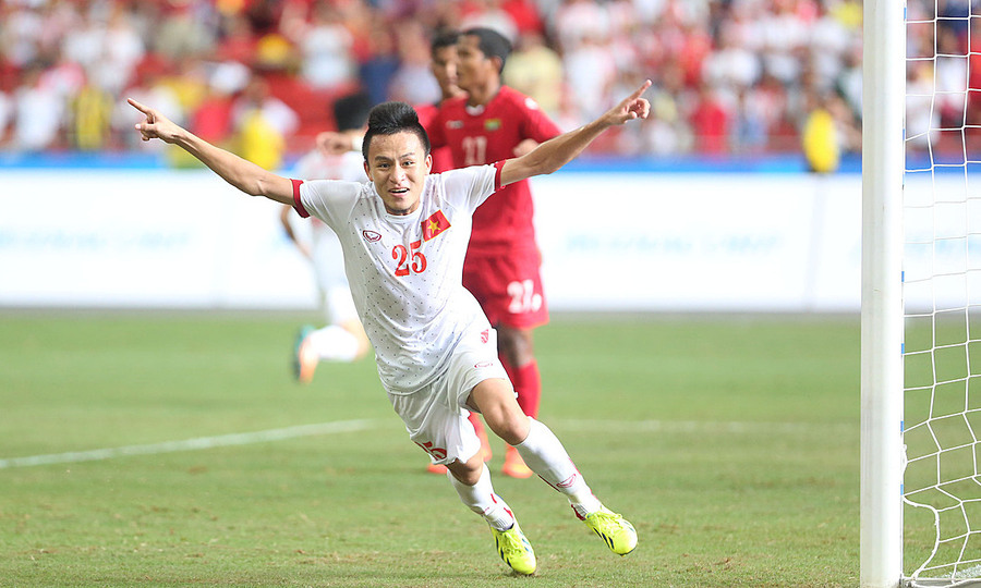 Võ Huy Toàn ăn mừng bàn thắng vào lưới Myanmar ở bán kết Đại hội thể thao Đông Nam Á 2015. Ảnh: Đức Đồng .