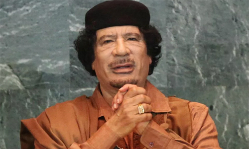 Gaddafi đã bị trục xuất và giết bởi lãnh đạo của Hội đồng Chuyển tiếp Quốc gia Libya (CNT) trong cuộc nội chiến Libya năm 2011. Kết cục bi thảm cũng chấm dứt 42 năm liên tiếp lãnh đạo quốc gia của nhà độc tài. Hình: Reuters-Xuan Huang