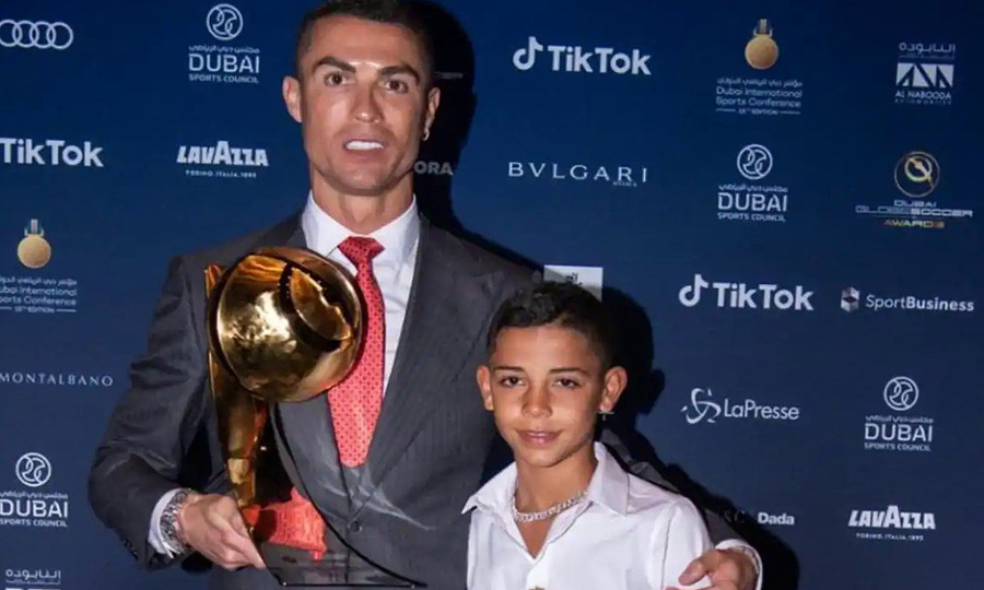 Cristiano Ronaldo phát biểu sau khi nhận giải thưởng “Cầu thủ bóng đá toàn cầu” vào ngày 28/12: “Tôi luôn nói với các con của mình rằng hãy tập luyện với thể trạng tốt nhất. Cậu ấy có tiềm năng trở thành một vận động viên xuất sắc. Điều quan trọng là phải chăm chỉ luyện tập mỗi ngày , thỉnh thoảng nó sẽ uống rượu. Soda, và sau đó ăn khoai tây chiên, nó biết tôi không thích nó, tôi thường dùng nó … Ronaldo nhỏ, và sau đó ngâm chân trong nước lạnh, cậu bé không thích nó . Chuyện này là bình thường. Cậu ấy mới “mười tuổi”. Ronaldo đã cho con trai vào học từ năm 2018. Học viện Thanh thiếu niên Juventus. Ảnh: Times of India.
