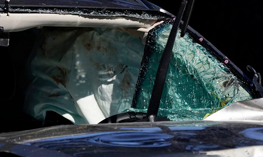 Vào sáng ngày 23 tháng 2, chiếc xe của Woods bị bẻ cong và nghiêng về phía tay lái tại địa điểm gặp nạn. Ảnh: KNBC / Reuters-Theo Cảnh sát trưởng Los Angeles Alex Villanueva, xe của Woods không có dấu hiệu phanh gấp và chạy nhanh hơn bình thường trong khu vực cấm với tốc độ 72 km / giờ nhanh hơn. Đại diện Villanueva Carlos Gonzalez (Carlos Gonzalez) cho biết đây là đoạn dốc và dễ xảy ra tai nạn khiến một số người thiệt mạng. Khi Gonzalez đến hiện trường, Woods đang ngồi ở ghế lái, thắt dây an toàn thì túi khí bung ra, phần đầu xe bị phá hủy hoàn toàn. Cựu tay golf số một thế giới vẫn còn khả năng nhận thức. Sau khi quan sát các điều kiện bên trong xe, Gonzalez đoán rằng khung gầm và cấu trúc bên trong chắc chắn đã giúp Woods trốn thoát.