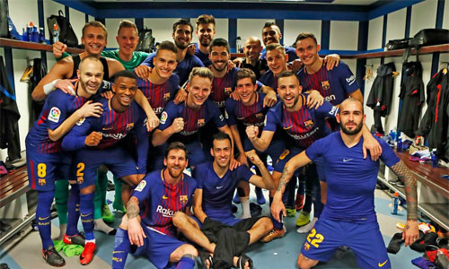 Những bức ảnh vừa được Barcelona tung ra cho thấy 18 cầu thủ vui mừng chiến thắng trong phòng thay đồ. Tiêu đề cho biết “Chúng tôi có thể làm điều đó một lần nữa. Hãy đến Barcelona”.