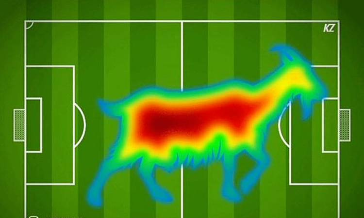 Sau màn trình diễn xuất sắc, Ronaldo nhanh chóng trở thành tâm điểm trên mạng xã hội và những bức ảnh nhân tạo. Một trong số đó là bức ảnh chụp bản đồ nhiệt của Ronaldo về một chú dê đang di chuyển. Viết dê là “dê” trong tiếng Anh. Nó cũng là từ viết tắt của “Greatest Ever”.