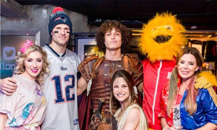 Cựu thủ môn của Chelsea đã cản phá Stoke City, Asmir Begovic (thứ hai từ trái sang) hóa trang thành ngôi sao bóng đá Mỹ Tom Brady, và David Luiz cải trang thành cựu võ sĩ La Mã. – Thủ môn của Chelsea đã dừng bước ở Stoke City, Asmir Begovic (cải trang thành ngôi sao bóng đá) người Mỹ Tom Brady, và David Luiz ( Center) cải trang thành một cựu quân nhân La Mã. Anh đội tóc giả giống Ferrani trên đầu, bên cạnh con gái và hai đồng đội ở ĐT Tây Ban Nha: Marcos Alonso và Pedro.