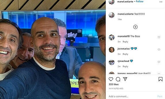 Manuel Estiarte, một thành viên của ban huấn luyện Manchester City, đã đăng những bức ảnh được chụp bởi Guardiola trong vòng vài phút sau phán quyết của Tòa án Thể thao (CAS) trên tài khoản Instagram của mình. Guardiola cầm điện thoại di động lên và chụp ảnh với Estiyat, giám đốc bóng đá Txiki Begiristain và một số người khác. Phía sau họ là một màn hình TV đang chiếu từ trên trời xuống.